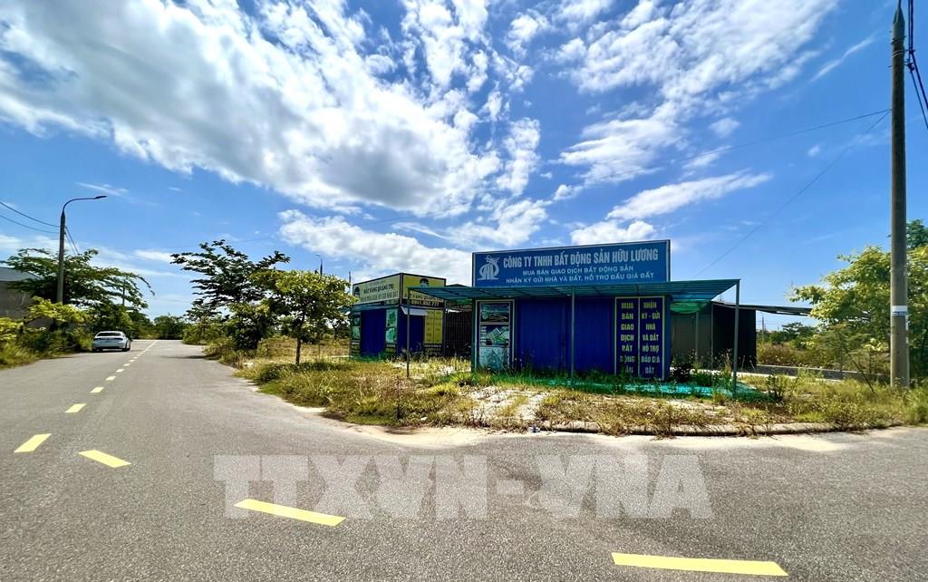 Cuối năm 2021 khi cơn sốt đất ở Quảng Trị bùng phát thì hoàng loạt văn phòng giao dịch bất động sản mọc lên như nấm ở khu đô thị Nam Đông Hà nhưng nay tất cả đều đóng cửa, bỏ hoang. Ảnh: Nguyên Linh - TTXVN