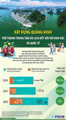 Du lịch có hệ thống cơ sở vật chất đồng bộ, hiện đại; sản phẩm du lịch đa dạng, đặc sắc, chất lượng đẳng cấp, thương hiệu mạnh và sức hấp dẫn toàn cầu năng lực cạnh tranh cao, liên kết hiệu quả với các hãng hàng không, tàu biển, tập đoàn du lịch hàng đầu quốc tế; du lịch Quảng Ninh tiếp tục là ngành kinh tế mũi nhọn, động lực thúc đẩy phát triển kinh tế-xã hội nhanh, bền vững và góp phần bảo đảm quốc phòng an ninh./.