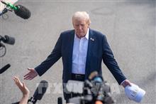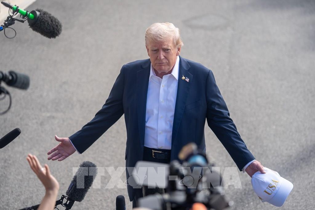 Tổng thống Mỹ Donald Trump trả lời phỏng vấn báo chí sau khi rời Nhà Trắng ở Washington, D.C., ngày 26/9/2025. Ảnh: THX/TTXVN