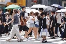 Người dân che ô tránh nắng nóng tại Tokyo, Nhật Bản. Ảnh: Kyodo/TTXVN