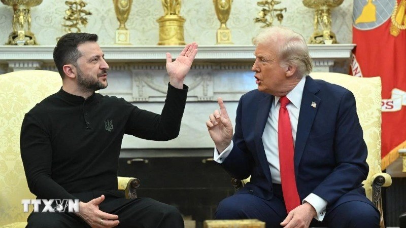 Tổng thống Mỹ Donald Trump (phải) hội đàm với Tổng thống Ukraine Volodymyr Zelensky tại Nhà trắng, ngày 28/2/2025. Ảnh: AP/TTXVN