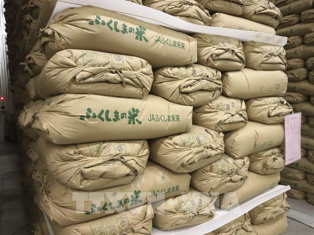 Gạo tại kho dự trữ ở Fukushima, Nhật Bản. Ảnh: Kyodo/TTXVN