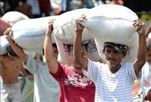 Người dân bốc xếp gạo từ nhà kho ở Tacloban, Philippines. Ảnh tư liệu: AFP/TTXVN