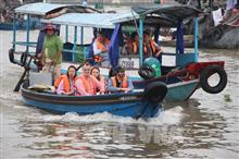 Du khách trải nghiệm du lịch sông nước Cần Thơ. Ảnh: Nguyễn Hằng - TTXVN