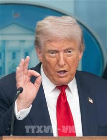Tổng thống Mỹ Donald Trump phát biểu trong một cuộc họp báo tại Washington, D.C. Ảnh: THX/TTXVN