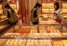 Khách hàng chọn mua trang sức vàng tại cửa hàng ở Hải Nma, Trung Quốc. Ảnh: THX/TTXVN