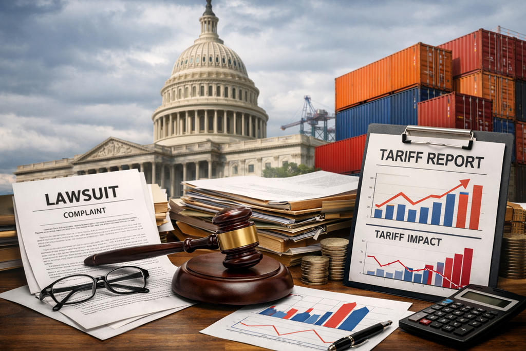 Chính phủ Mỹ đối mặt hàng nghìn vụ kiện liên quan đến thuế quan. Ảnh minh hoạ: AI tạo