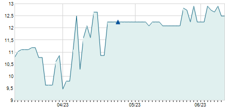 | 30/07/2021 | +0,60 / +4,84% | 12,50 | 13,20 | 12,50 | 13,00 | 12,90 | 7,37 | 1.979.800 |   |