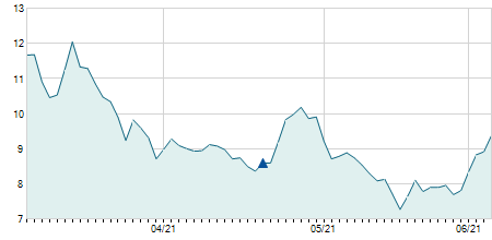 | 09/07/2021 | -1,70 / -11,81% | 14,40 | 14,40 | 12,40 | 12,70 | 13,10 | 7,20 | 6.088.100 |   |
