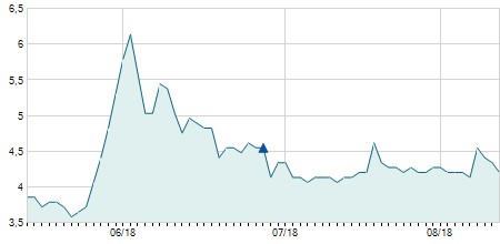 | 31/10/2023 | -0,40 / -4,71% | 8,40 | 8,50 | 8,00 | 8,10 | 8,30 | 8,10 | 150.500 |   |