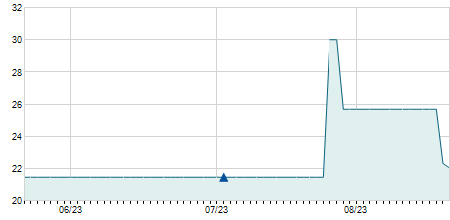 | 23/09/2019 | -0,60 / -0,78% | 80,00 | 80,00 | 73,00 | 76,40 | 75,81 | 45,89 | 6.700 |   |