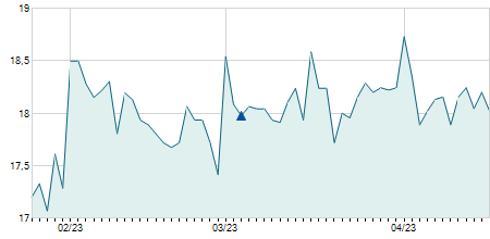 | 23/03/2022 | +0,20 / +1,19% | 16,80 | 17,10 | 16,50 | 17,00 | 16,90 | 17,00 | 386.700 |   |