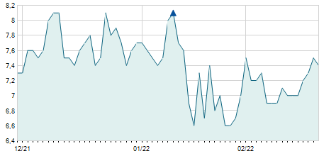-0,70 / -4,58%