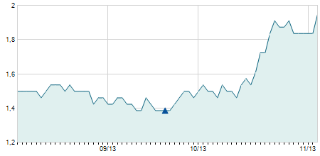 | 03/11/2023 | +0,05 / +0,37% | 13,70 | 13,70 | 13,25 | 13,45 | 13,46 | 12,24 | 2.111.900 |   |