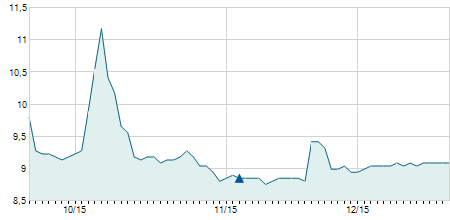 | 10/11/2023 | -0,05 / -0,33% | 14,55 | 15,50 | 14,55 | 14,90 | 15,07 | 13,56 | 2.571.500 |   |
