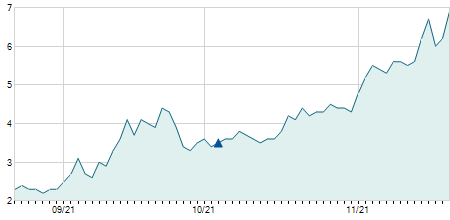 | 03/03/2022 | +0,20 / +1,40% | 14,10 | 14,60 | 14,10 | 14,50 | 14,40 | 14,50 | 12.400 |   |