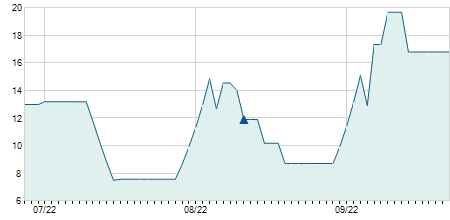 | 27/09/2019 | -0,50 / -2,46% | 20,00 | 20,00 | 19,80 | 19,80 | 19,88 | 12,17 | 500 |   |