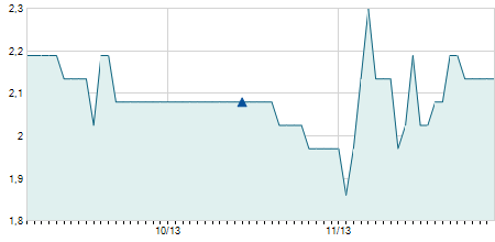 | 17/12/2021 | -0,30 / -1,14% | 24,40 | 26,00 | 24,40 | 26,00 | 24,67 | 19,38 | 1.500 |   |