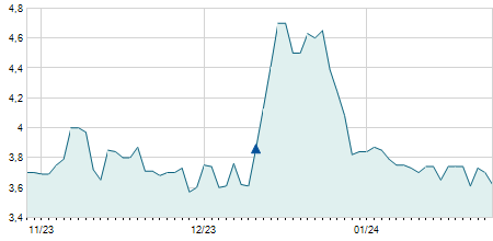 -0,50 / -3,65%