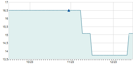 | 30/05/2017 | +1,40 / +6,25% | 23,80 | 23,80 | 23,80 | 23,80 | 23,80 | 11,50 | 100 |   |