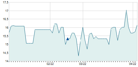 | 17/03/2025 | -1,00 / -2,50% | 39,90 | 39,90 | 39,00 | 39,00 | 39,30 | 38,47 | 300 |   |