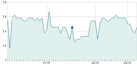 | 31/03/2025 | -0,40 / -1,01% | 38,40 | 39,10 | 38,40 | 39,10 | 38,75 | 38,57 | 200 |   |