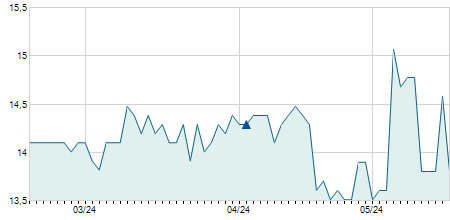 | 21/06/2022 | -0,40 / -4,26% | 9,40 | 9,40 | 9,00 | 9,00 | 9,30 | 9,00 | 92.700 |   |