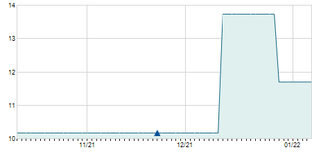 | 02/11/2022 | -0,10 / -1,72% | 5,80 | 5,80 | 5,70 | 5,70 | 5,70 | 5,70 | 21.800 |   |