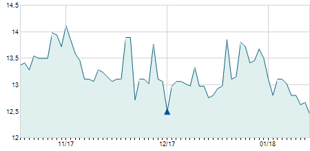 | 06/01/2022 | -0,10 / -0,83% | 12,20 | 12,30 | 12,00 | 12,00 | 12,10 | 12,00 | 353.400 |   |