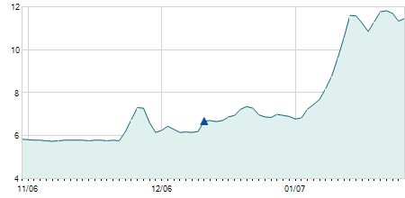 | 12/01/2022 | -0,40 / -3,51% | 11,40 | 11,40 | 10,80 | 11,00 | 11,20 | 11,00 | 282.700 |   |