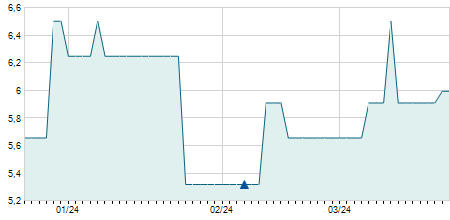 | 11/11/2021 | +0,10 / +0,25% | 39,60 | 39,60 | 39,60 | 39,60 | 39,60 | 21,59 | 100 |   |