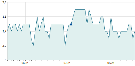 | 08/06/2018 | -0,60 / -6,32% | 8,90 | 8,90 | 8,90 | 8,90 | 8,90 | 6,26 | 0 |   |