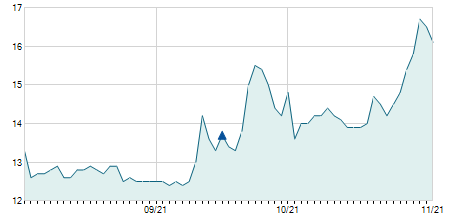 | 12/04/2021 | +0,70 / +1,00% | 70,00 | 70,70 | 65,20 | 70,50 | 69,51 | 61,43 | 18.700 |   |