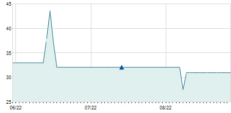 | 09/08/2024 | 0,00 / 0,00% | 7,90 | 8,00 | 7,80 | 7,90 | 7,90 | 7,14 | 5.100 |   |