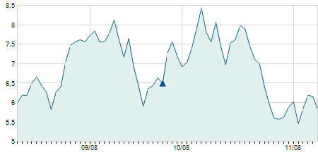 | 08/08/2024 | +0,30 / +3,95% | 7,80 | 8,10 | 7,60 | 7,90 | 7,90 | 7,14 | 24.500 |   |