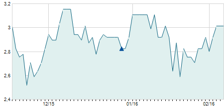 | 28/02/2025 | -0,10 / -12,50% | 0,80 | 0,80 | 0,70 | 0,70 | 0,70 | 0,70 | 91.600 |   |