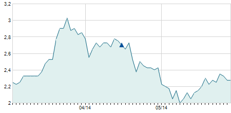 | 31/08/2018 | 0,00 / 0,00% | 0,90 | 0,90 | 0,70 | 0,80 | 0,80 | 0,80 | 173.100 |   |