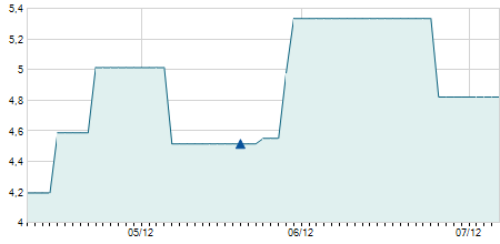 | 05/05/2025 | +0,50 / +4,00% | 13,00 | 13,00 | 12,90 | 13,00 | 13,50 | 12,16 | 2.200 |   |