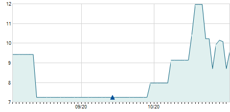 | 09/08/2024 | +0,90 / +4,97% | 18,10 | 20,80 | 18,10 | 19,00 | 19,20 | 17,78 | 2.200 |   |