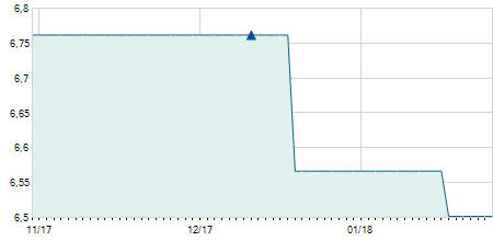 | 01/03/2024 | -0,10 / -2,63% | 3,70 | 3,70 | 3,70 | 3,70 | 3,70 | 3,70 | 6.600 |   |