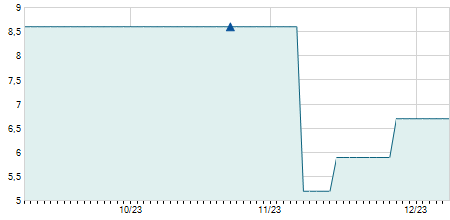 -0,70 / -5,43%