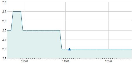 | 23/10/2017 | 0,00 / 0,00% | 9,70 | 9,70 | 9,70 | 9,70 | 9,70 | 8,02 | 0 |   |