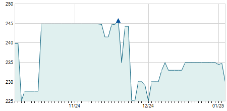 | 07/09/2022 | -3,00 / -4,62% | 64,80 | 64,80 | 62,00 | 62,00 | 63,17 | 44,68 | 121.000 |   |