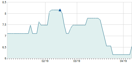 | 09/06/2025 | -3,00 / -14,02% | 20,30 | 20,30 | 18,40 | 18,40 | 19,60 | 17,34 | 3.700 |   |