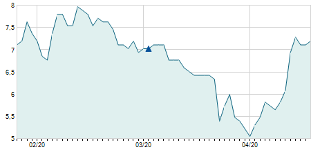| 07/06/2023 | -0,20 / -1,72% | 11,70 | 11,70 | 11,30 | 11,40 | 11,40 | 10,21 | 923.900 |   |