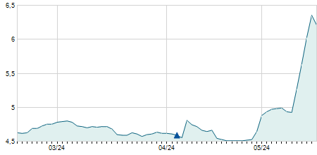| 29/08/2023 | +0,10 / +0,95% | 10,50 | 10,70 | 10,40 | 10,60 | 10,50 | 9,49 | 335.700 |   |