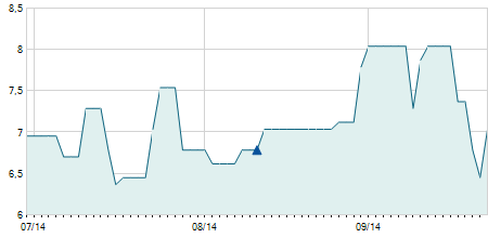 | 26/10/2010 | +0,50 / +0,79% | 63,50 | 64,00 | 62,50 | 64,00 | 64,00 | 46,00 | 85.790 |   |