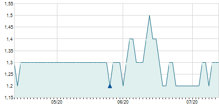 | 25/08/2021 | -0,20 / -0,57% | 34,70 | 34,70 | 34,70 | 34,70 | 34,70 | 25,03 | 2.000 |   |