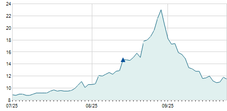| 25/01/2024 | -4,10 / -11,88% | 30,30 | 30,40 | 30,30 | 30,40 | 30,30 | 24,92 | 15.700 |   |