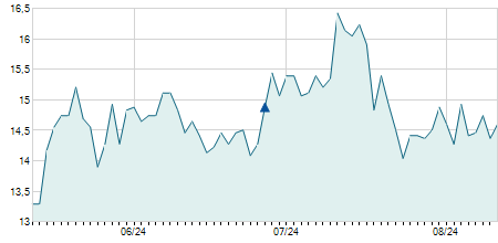 | 14/08/2024 | +0,90 / +2,80% | 32,50 | 33,00 | 32,50 | 33,00 | 33,00 | 30,98 | 25.300 |   |